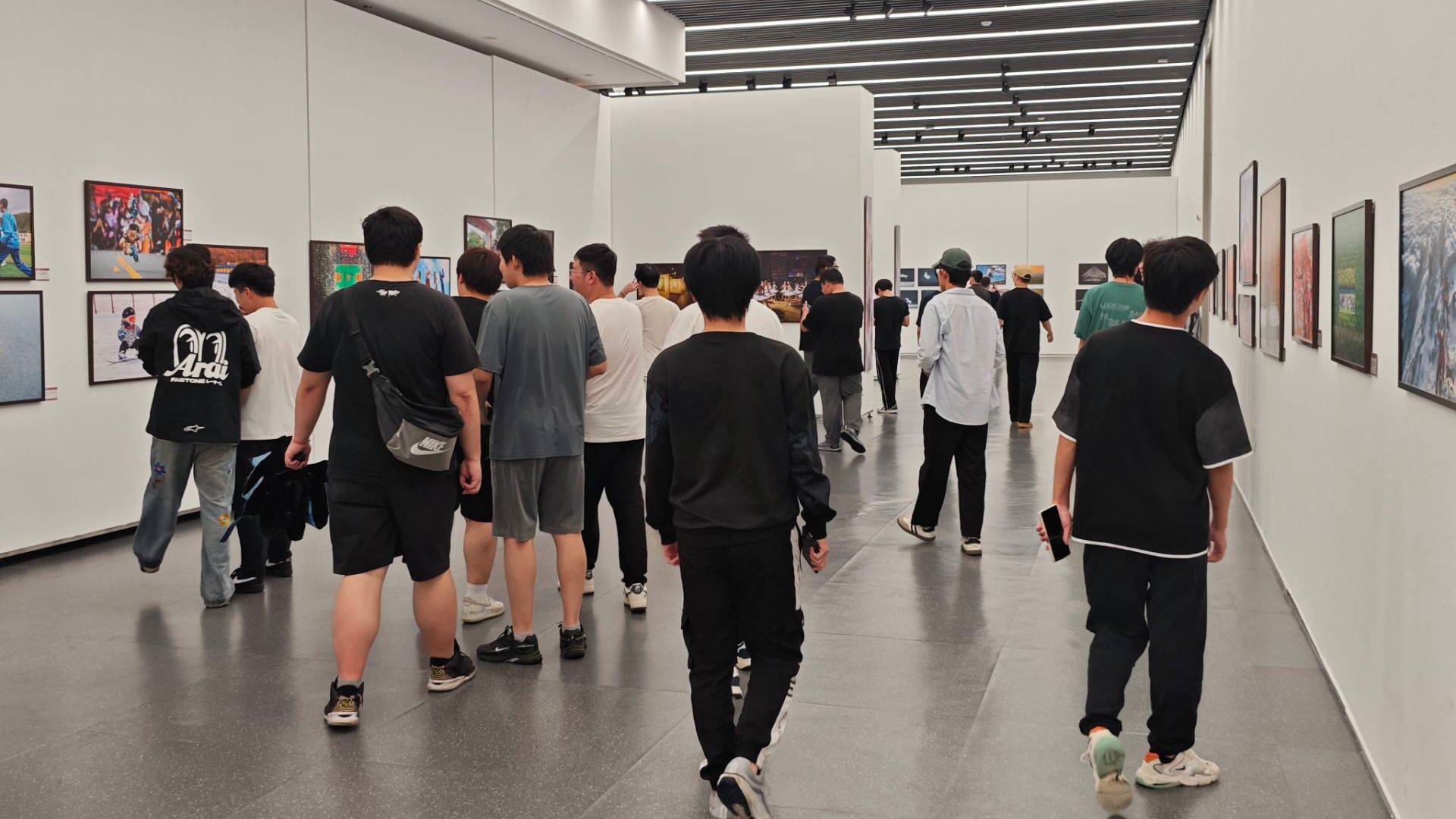 步入展厅,同学们立刻被充满质感的工艺美术作品吸引。从记录时代变迁的纪实摄影,到展现工艺巧思的装置艺术,每一件作品都凝聚着创作者的匠心。在摄影展区,同学们驻足于反映工业发展、匠人劳作的影像前,结合自身汽车与机电专业背景,热烈讨论“技术精度”与“艺术表达”的共通性,在互动体验区,大家近距离观察工艺细节,感受传统技艺与现代设计的碰撞,不少同学还拿出手机记录灵感瞬间,现场学习氛围浓厚。