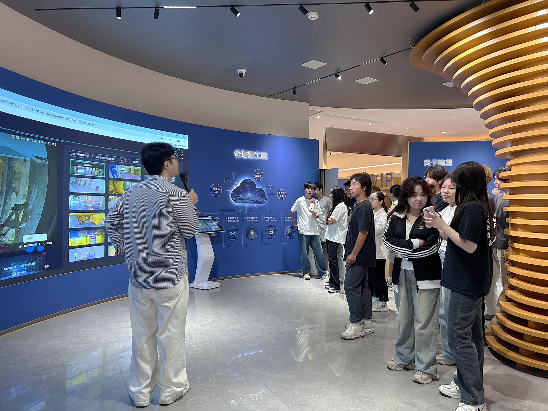 首先铭望装饰的饶主任为同学们详细介绍了公司的企业文化和项目开展情况。铭望装饰立足广大民众的生活需求,专注于不同受众人群,特别是适老化设计的深入研究,为家装业主提供了更多高性价比的产品,实现了产品工厂直供化、设计专业化、产品质量控制专业化、采购物流扁平化、施工安装标准化、价格透明一体化、系统控制时间准时化等。