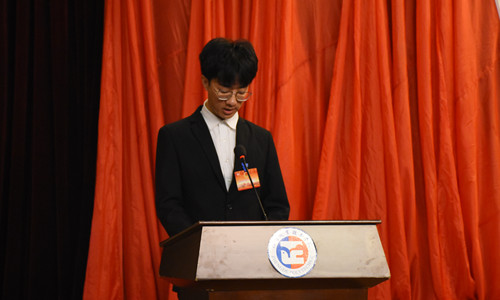 江苏经贸职业技术学院学生会主席杨娜代表兄弟高校向大会致贺辞,江苏省学生联合会执行主席韩沛宸代表省学联向大会的召开表示热烈的祝贺,对betway必威学生会工作给予了高度的认可和肯定,同时对学生会进一步改革发展提出了希望和要求。他强调,一要遵循党的领导,坚定理想信念。二要凝聚青春力量,规范思想意识。三要挖掘自身优势,明确职能定位。学生会成员要始终牢记全心全意为同学服务的宗旨,用情怀书写青春,用真诚服务同学。