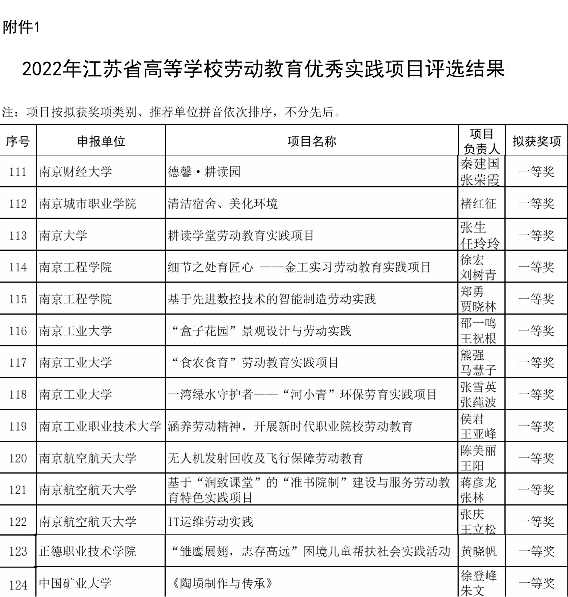 betway必威荣获2022年江苏省高等学校劳动教育优秀实践项目一等奖