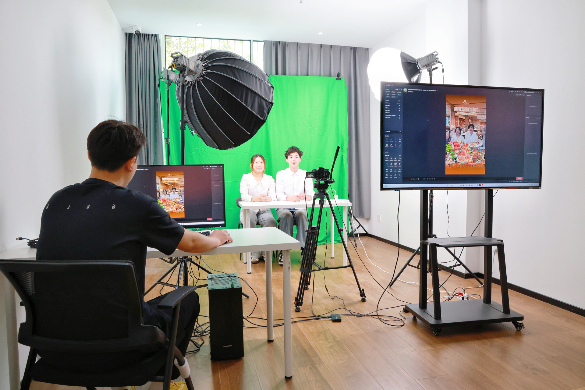 1.网络直播实训。依托企业真实项目打造多个实战直播间,构建“策划—执行—复盘”全流程实训体系。学生以真实主播身份入驻智能直播间,运用绿幕抠像、三维商品可视化等技术,在国潮文化、科技产品等主题场景中完成直播带货全流程实操。通过学校+企业双导师指导,掌握话术设计、流量运营、实时互动等核心技能,实现从课堂演练到商业直播的无缝衔接。