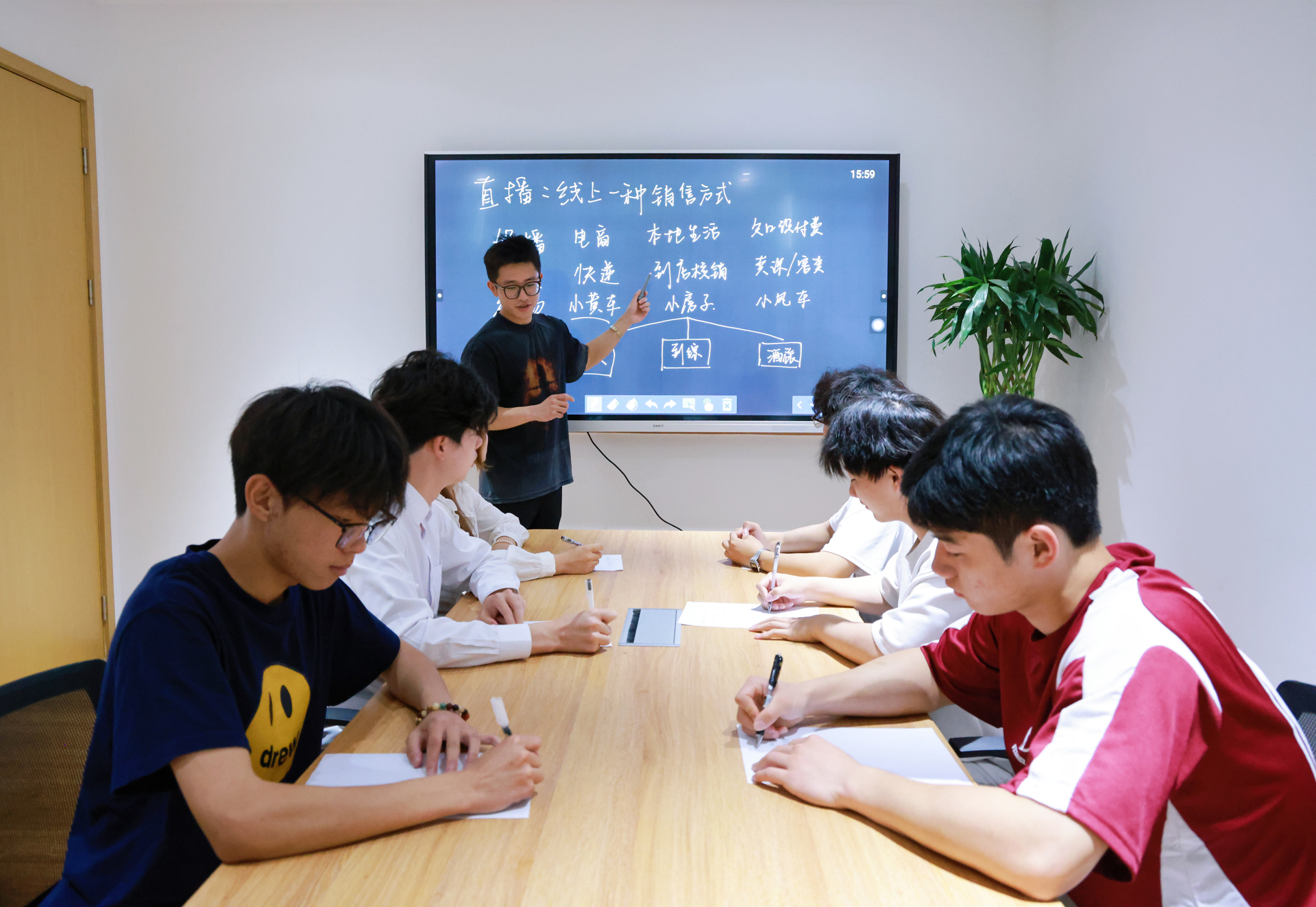 实训中心创新推行“企业项目进课堂”教学模式,与新手村科技共建的“数字营销工场”通过开展真实商业项目。通过双导师制指导,学生团队在真实商业环境中完成从选品策划、脚本撰写、直播执行到复盘的全流程实训。