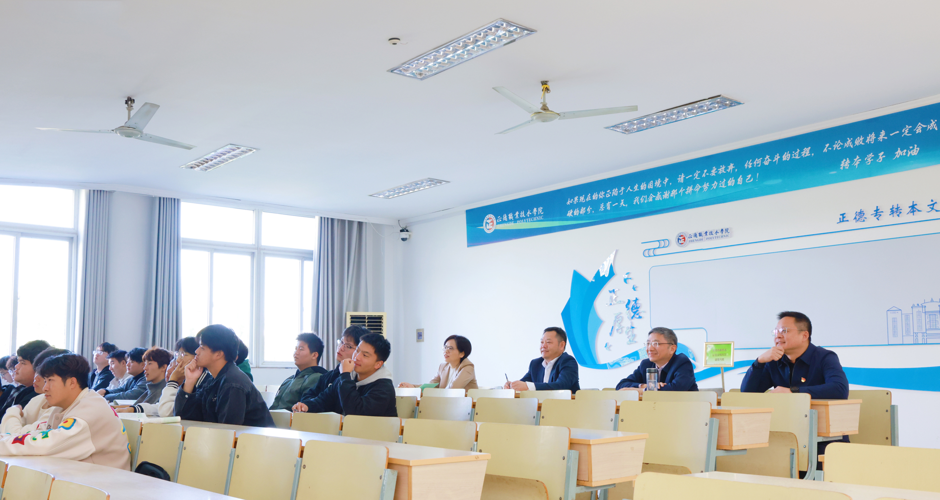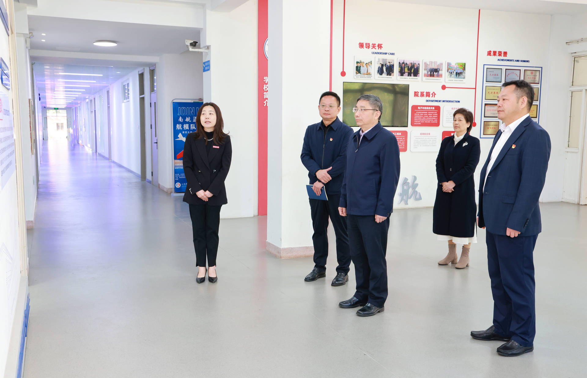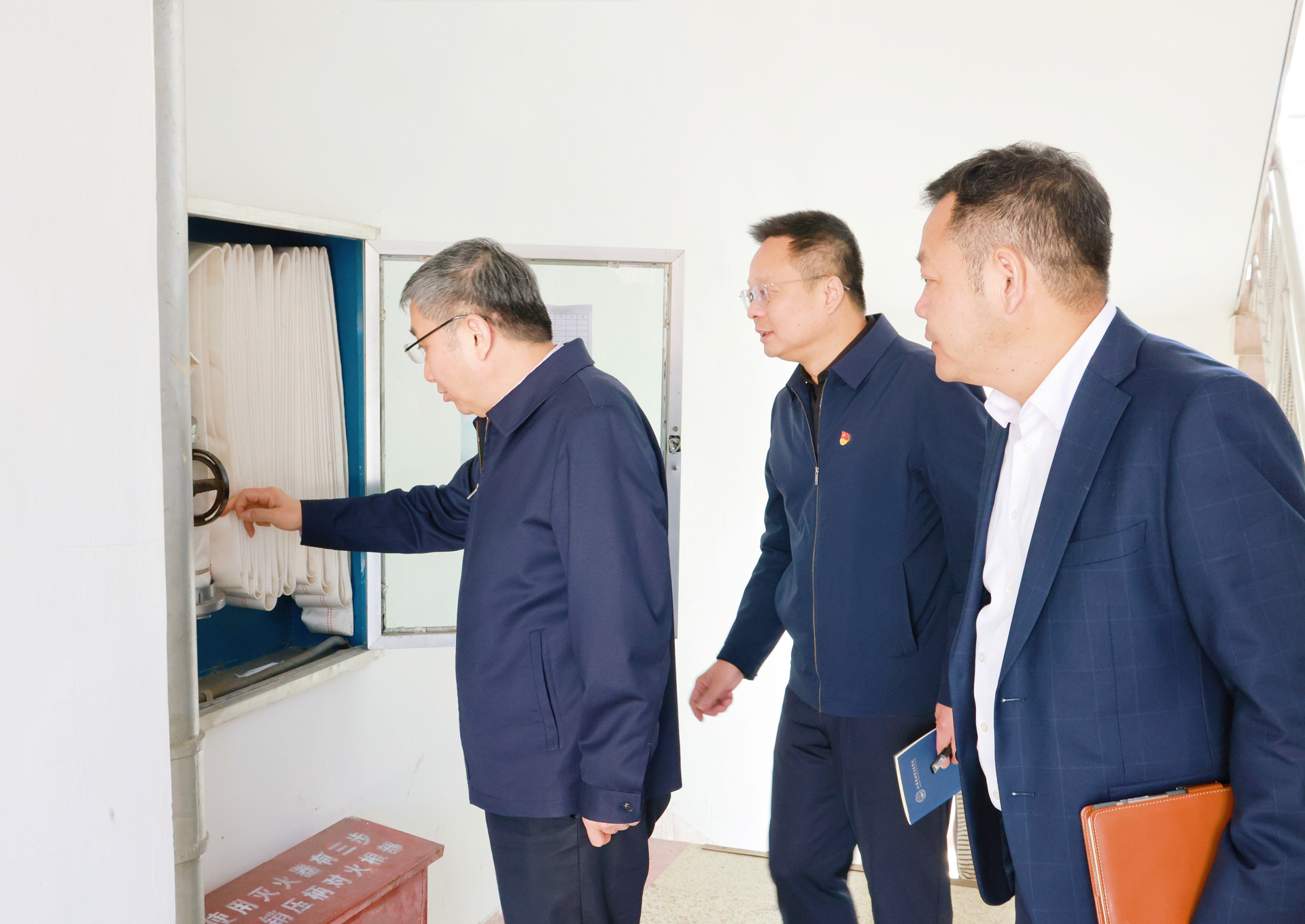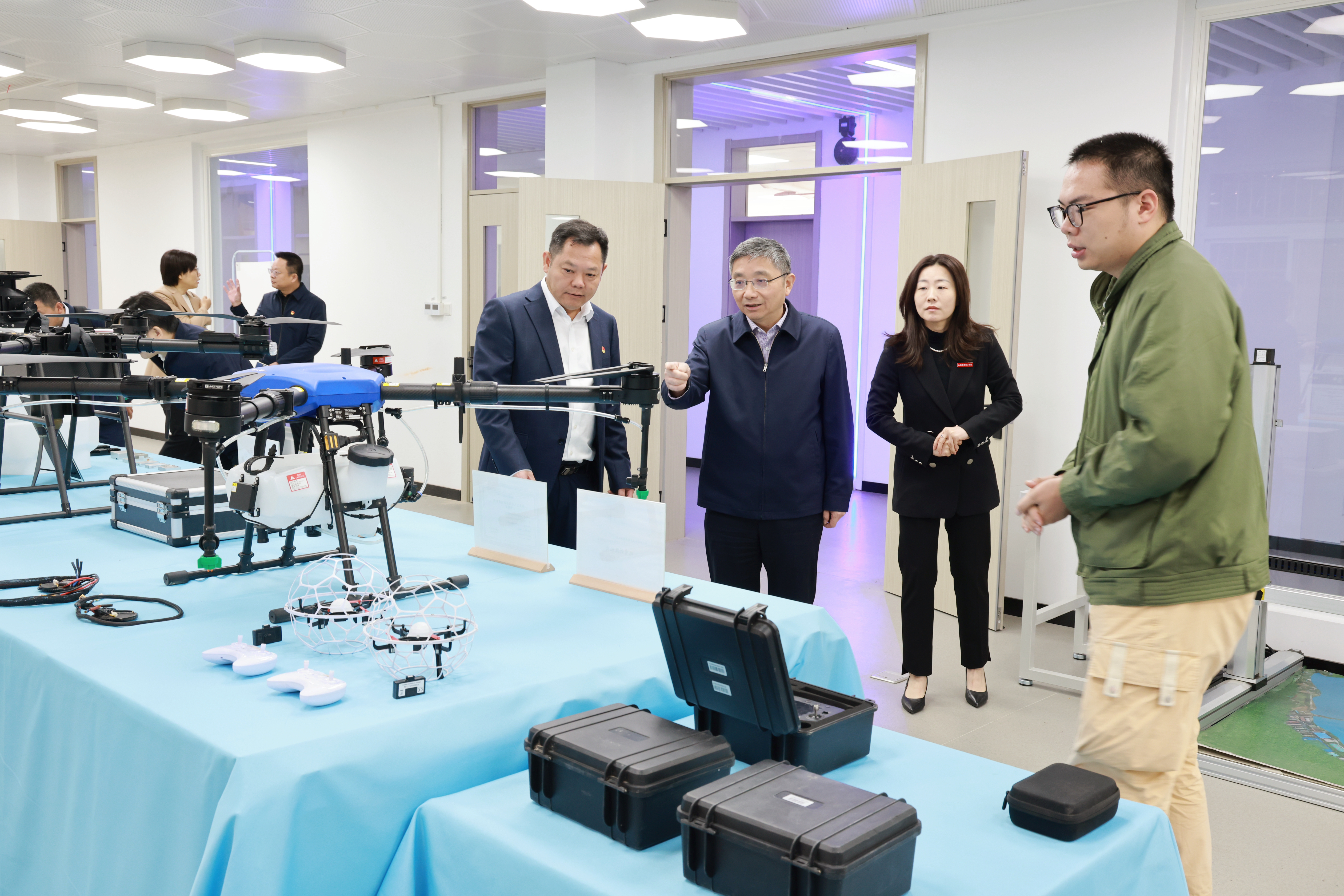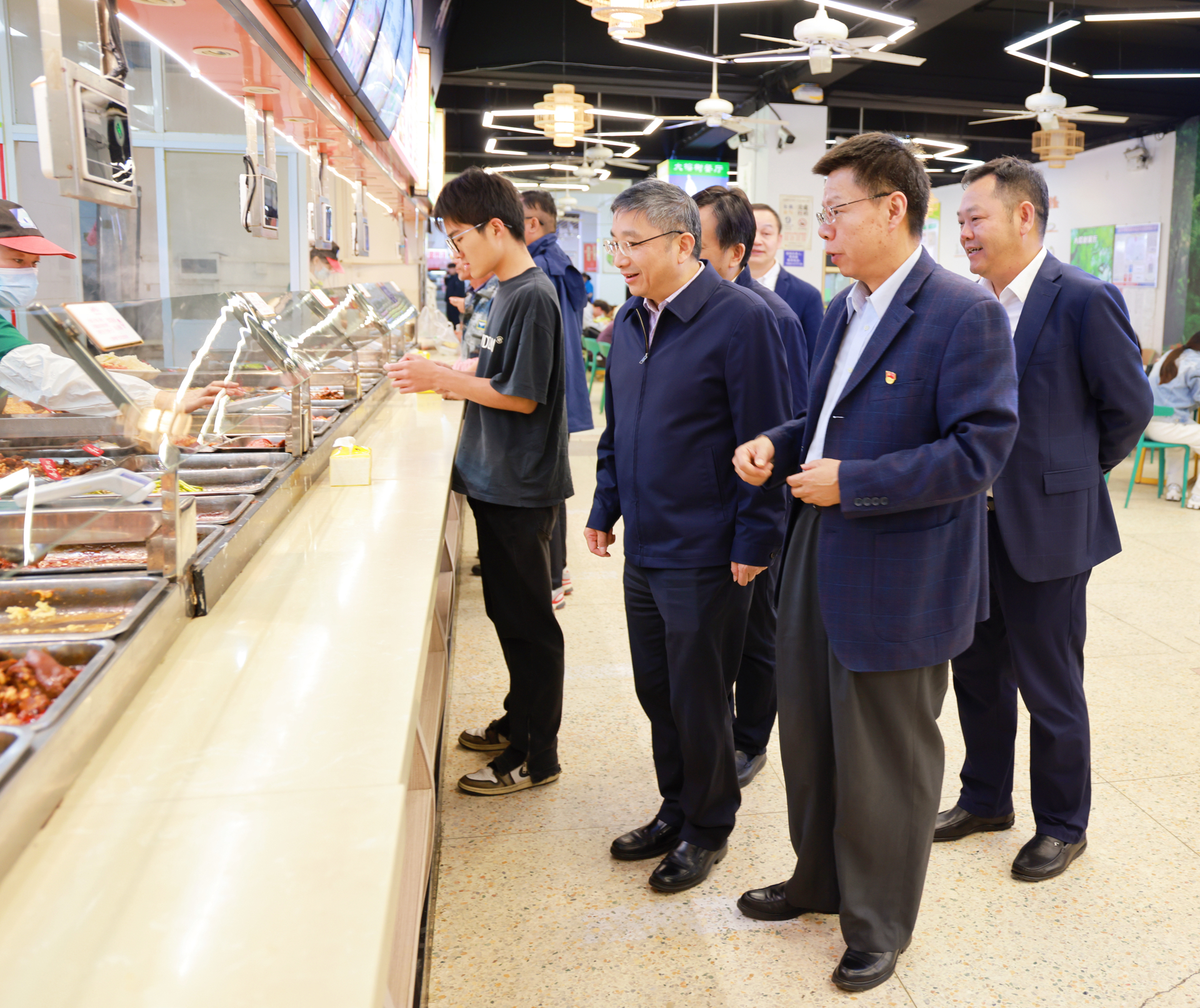 会前,江涌一行走进教室,听取了一堂思政课,深入了解学院思想政治理论课建设情况。实地考察了大国工匠工作室、实训中心,并检查了学院消防设施。会后,江涌一行检查调研了学院食堂,并与学生交流学习与生活。