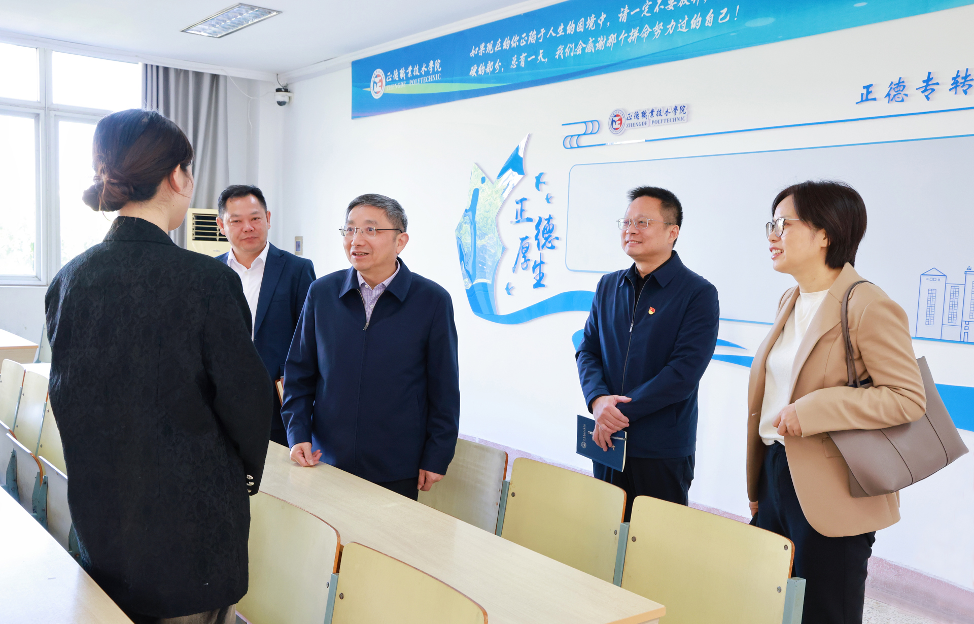 10月23日上午,省教育厅厅长、党组书记、省委教育工委书记江涌来学院调研党建与思想政治工作,列席旁听学院党委理论学习中心组学习会。院党委书记、政府督导专员孙雷、院长孙永荣陪同调研。